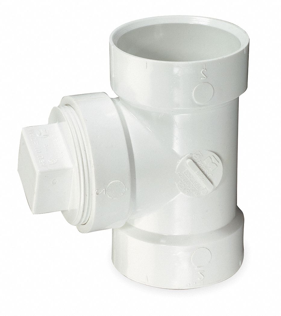 Pvc fittings online offers the best priced pvc products at the lowest prices. 3 pvc white dwv cleanout tee, h x h x female national pipe thread (fpt) 192117s. The pvc cleanout plug enables access to sewer and drain (sewer and drain) pipe systems to feed a plumbing snake into a clogged drain pipe. Pvc dwv test tee features a hub x hub x cleanout connection with a plug to test the tightness of the system by assessing potential leakage. Return this item for free.