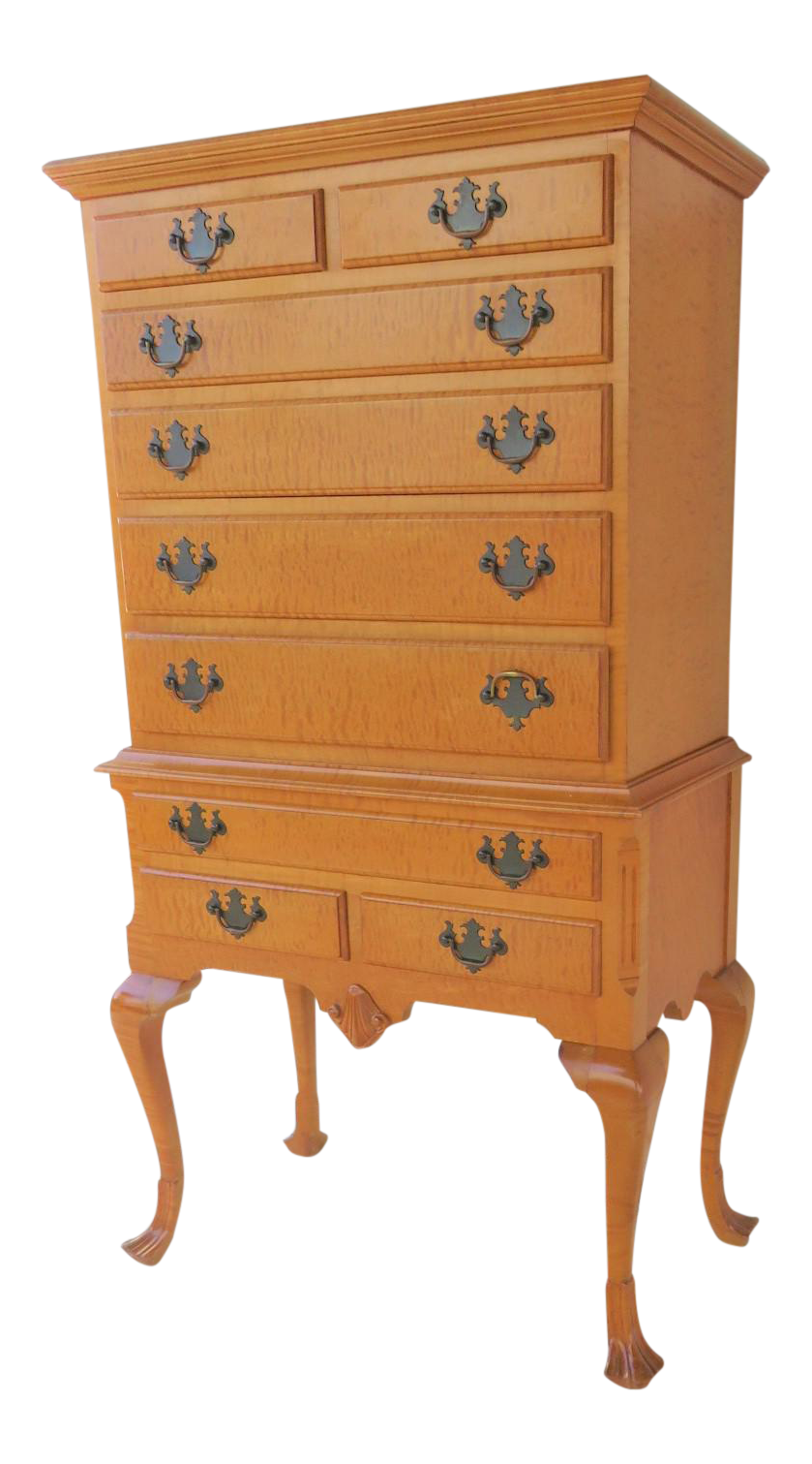 This chest featuring contemporary lines and modern metal handles offers practical drawers. American drew maple finish chest of drawers $235 minor fading on top item#20110. Maple finish bachelor's chest $235 with hutch bassett item#19296. $995.00 american antique early 19th century chippendale style maple 5 drawer high chest Furthermore the interior of the top drawer is felt lined for jewelry or tie storage.
